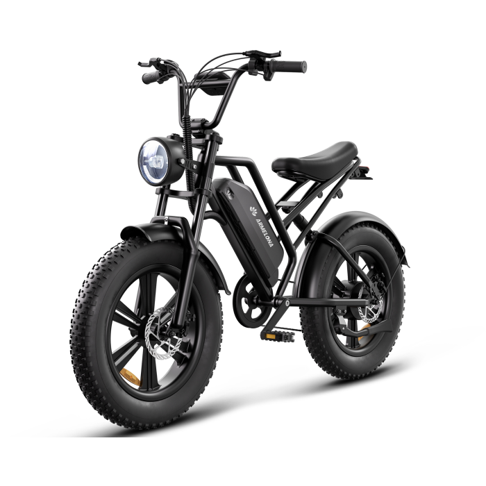 Электровелосипед Armelona AR-15 (G50) построен на базе широких шин размером 20×4.0 дюйма, которые относятся к классу фэтбайков и обеспечивают уверенное движение по песку, снегу, грязи и другим сложным покрытиям. Стальная рама обладает высокой прочностью и способностью выдерживать значительные динамические нагрузки при активной эксплуатации на бездорожье. Двухподвесная система с передней амортизационной вилкой и задним амортизатором обеспечивает полную амортизацию и плавность хода даже по самым неровным участкам.
