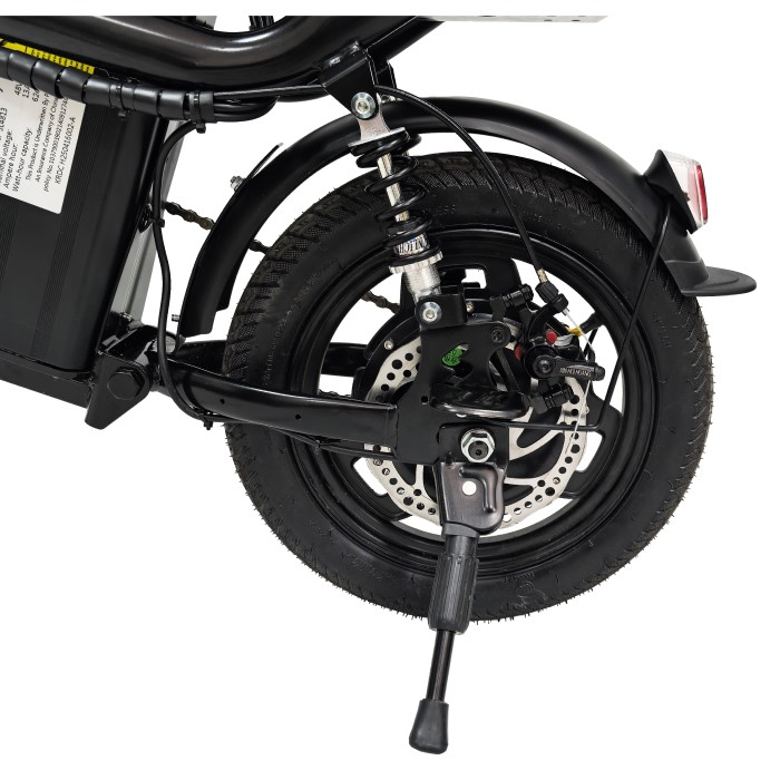 Колеса диаметром 14 дюймов обеспечивают отличную маневренность в плотном городском потоке и позволяют легко маневрировать между автомобилями и объезжать препятствия. Максимальная нагрузка составляет 120 кг с учетом веса водителя и груза на багажнике, что подходит для большинства пользователей. Регулируемое по высоте сиденье позволяет настроить посадку под рост водителя для максимального комфорта.