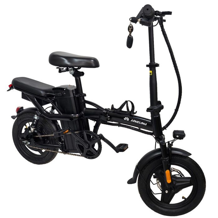 Электровелосипед Armelona AR-18 оборудован складной рамой, которая позволяет быстро уменьшить размеры устройства для удобного хранения в малогабаритных квартирах или перевозки в общественном транспорте. В рабочем состоянии габариты составляют 1380×530×1071 мм, а в сложенном виде велосипед становится еще более компактным, занимая минимум места. Вес нетто равен 25.74 кг, что делает его удобным для переноски по лестнице и загрузки в автомобиль.
