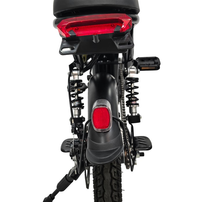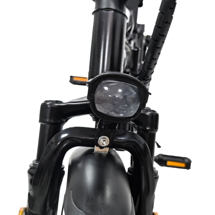 Передние светодиодные фары и задний фонарь обеспечивают отличную видимость в темное время суток, делая велосипед заметным для других участников движения. Светотехника питается от основной батареи, что исключает необходимость в дополнительных элементах питания. Задний механический DVD-тормоз обеспечивает эффективное и предсказуемое замедление в любых погодных условиях.